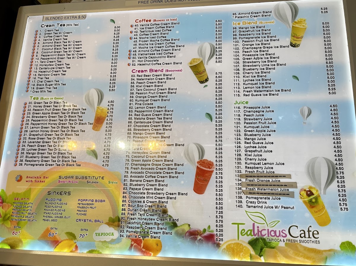 The flavor profiles here are strikingly balanced—creamy, fruity, and sometimes subtly sweet—offering both classic and inventive choices like avocado cream with chocolate or customizable add-ons such as coconut and matcha. Though prices lean slightly higher compared to other local spots, the quality, atmosphere, and service justify every penny. Tealicious Cafe is not just a stop for a drink but a destination where taste meets comfort, making it a go-to favorite for many in the community. If you love boba or want to dive into the world of tea blends, Tealicious Cafe is an experience worth savoring.